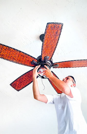 Rapid response service for ceiling fans that have become electrical hazards due to sparking, overheating, or motor failure. Available 24/7.
